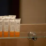 这间公寓里的私人洗澡间配备吹风机和烘干机.